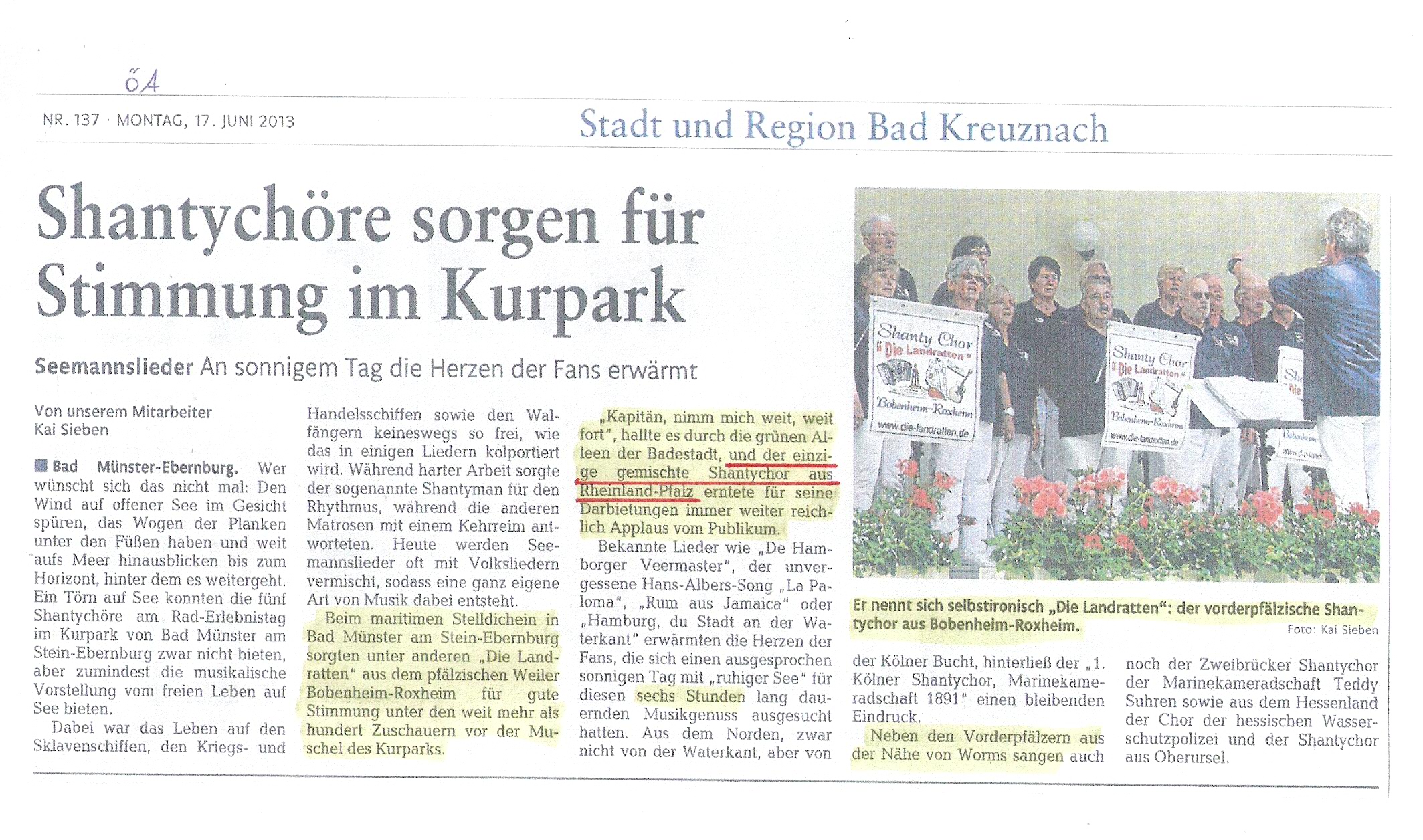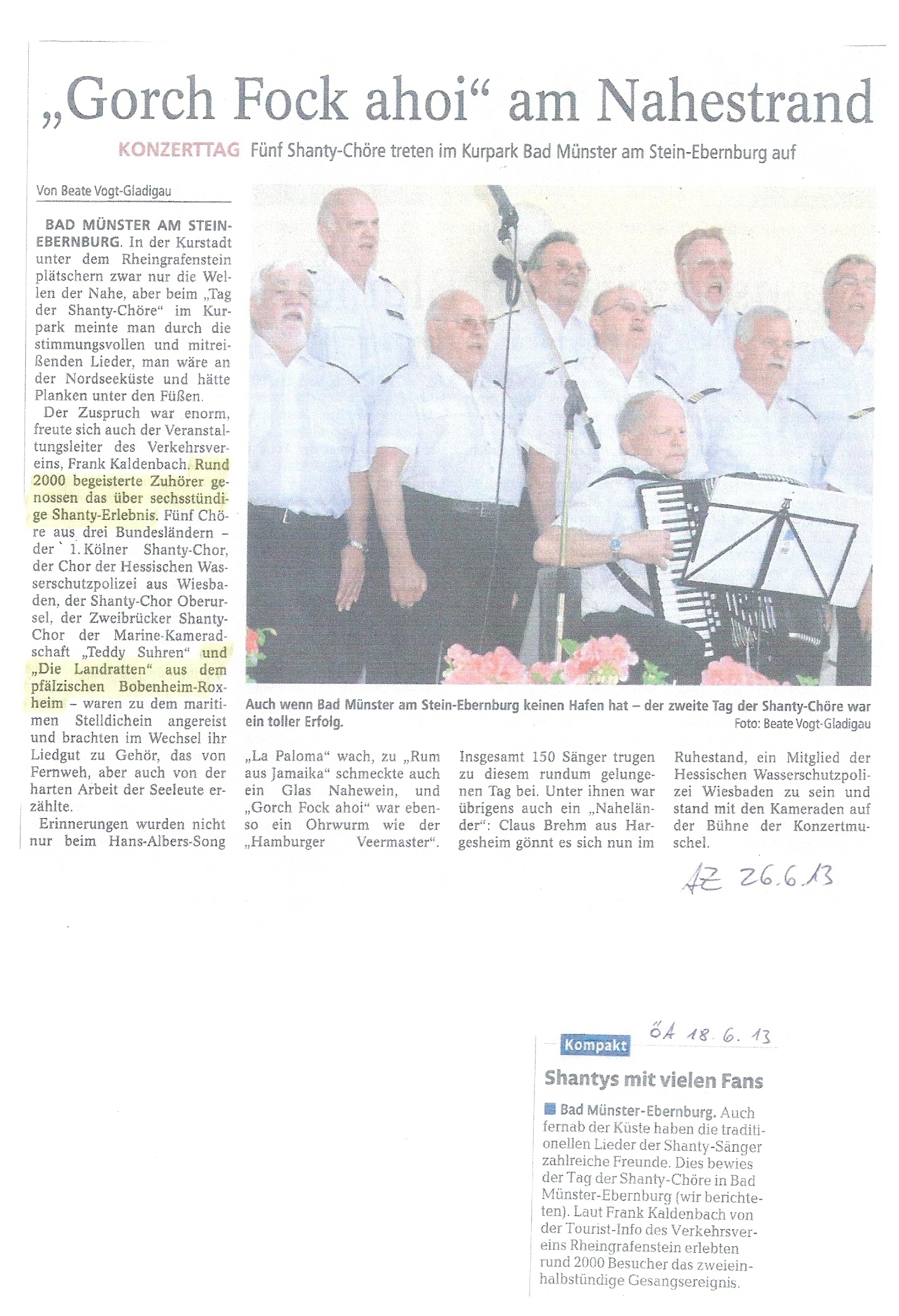 16. Juni                        Tag der  Shanty-Chöre   in Bad Münster am Stein-Ebernburg