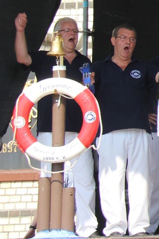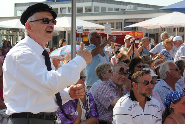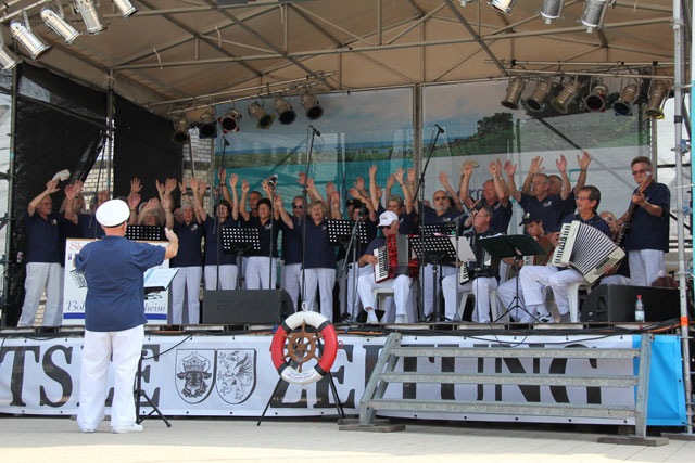 Bis zum frühen Nachmittag hatten noch weitere Shanty-Chöre ihren Auftritt, darunter der Stedinger Shanty-Chor Lemwerder, der Gronauer Shanty-Chor, die „Romantik Sailors“ vom Marine Verein Iserlohn, der Rostocker Shanty-Chor „Luv un Lee“ und als Gastgeber „De Klaashahns“ aus Warnemünde. Deren Ehrenchorleiter, Dietmar Bellmann, ließ es sich am Ende der Veranstaltung dann auch nicht nehmen, das große Gemeinschaftssingen anzuleiten.